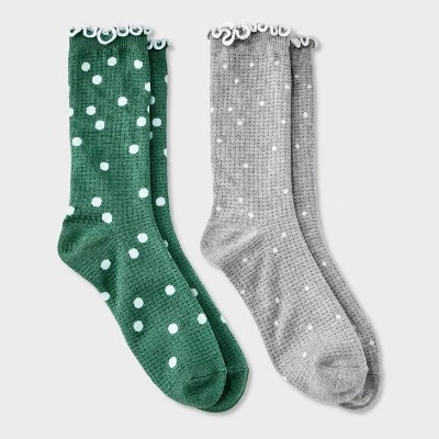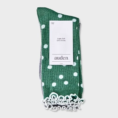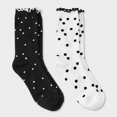 Dress up with a playful vibe using the Women’s Lettuce Edge Polka Dot 2pk Crew Socks from Auden™ 4-10. Crafted from a soft blend of viscose, polyester, nylon and spandex, these knit crew socks offer a cozy and breathable fit. Featuring delicate lettuce edge detailing and a classic polka dot design, they bring a fun look to any outfit in an instant. Designed with rib cuffs for a secure fit, these midweight socks provide comfort and ease of movement.
